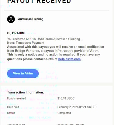 4. متى يتم الدفع؟ الميزة الخرافية في هذا الموقع هي الدفع اليومي الأوتوماتيكي. إذا وصلت للحد الأدنى للسحب (3$) وقمت بتفعيل هويتك، سيتم إرسال أرباحك تلقائياً كل يوم دون أن تطلب ذلك!